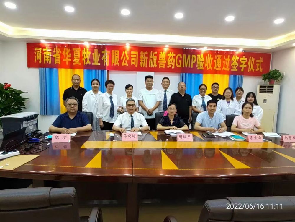 從學習新版GMP知識到設備考察選型,再到車間設計改造、設備安裝調試、試生產,歷時一年多,在全體員工的共同努力下,河南省華夏牧業(yè)有限公司于2022年6月16日順利通過新版獸藥GMP驗收!